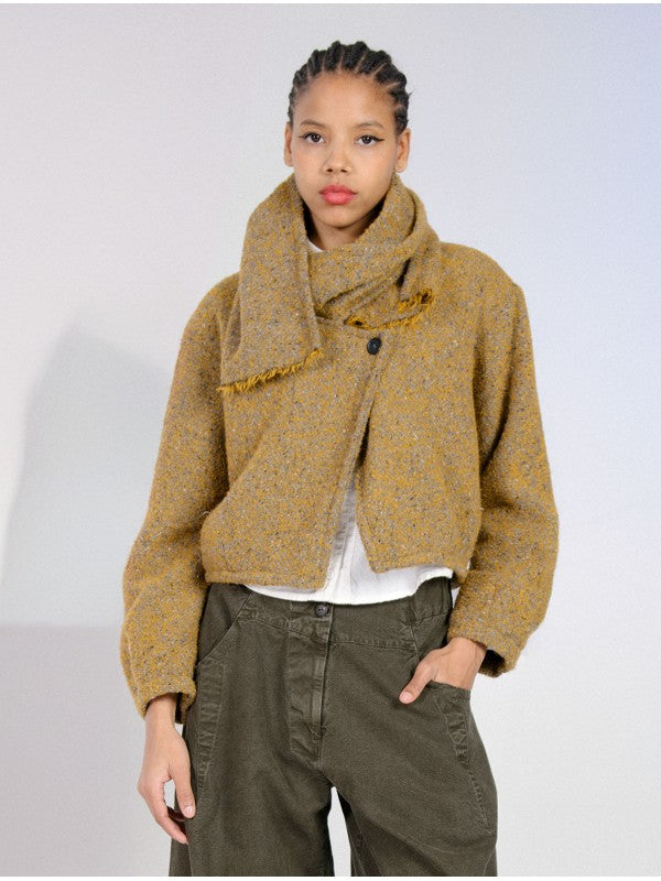 CHAQUETA DE TWEED DE LANA, CÁLIDA Y SUAVE, FORRADO EN POLAR, MANGAS FORRADAS DE SATEN