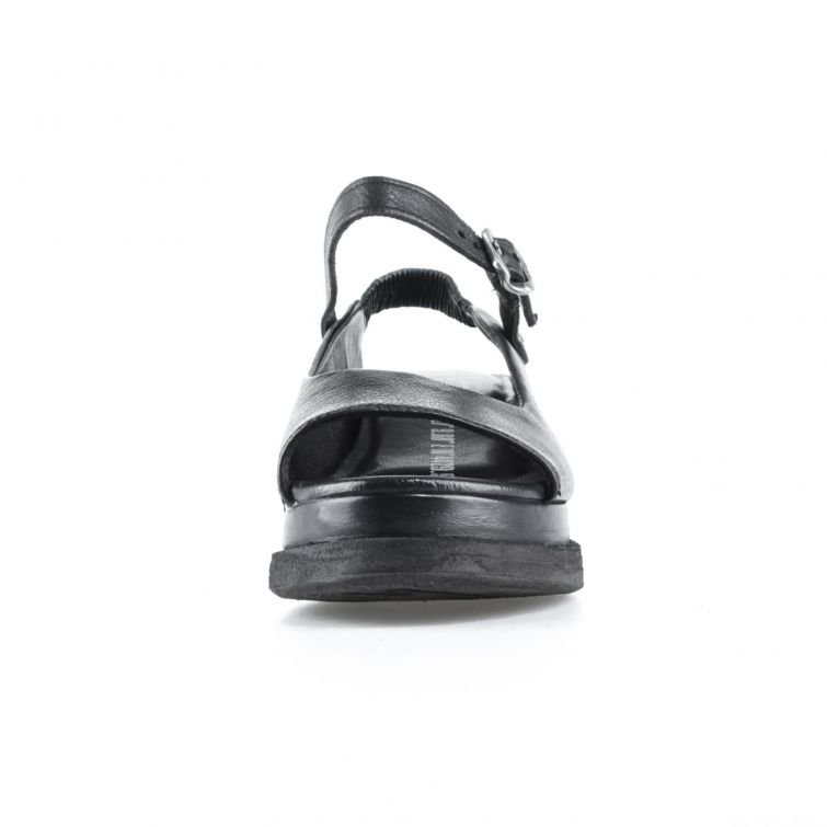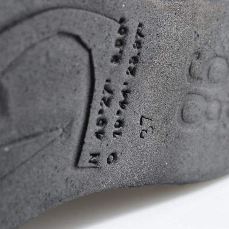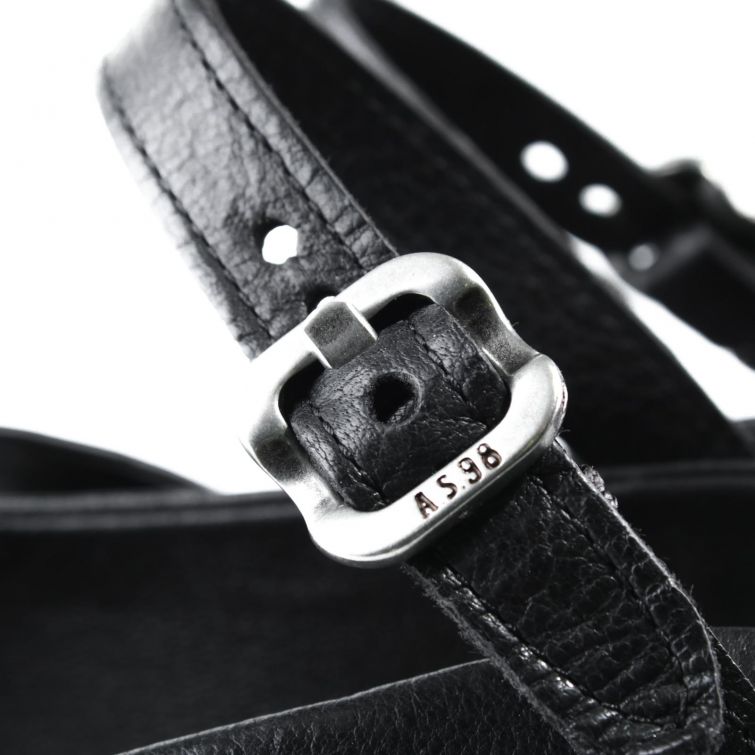 La línea Lagos 2.0 consiste en una sandalia de doble plataforma. La plantilla está revestida de cuero con las coordenadas del Departamento de Estilo y Diseño grabadas. Con esta línea, pasamos de una ausencia casi total de accesorios a una presencia muy marcada de los mismos, realzando notablemente esta sandalia de cuero.